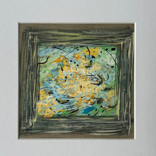 Vintage Colorful Abstract Oil Painting #2 in Light Gold Bamboo Frame