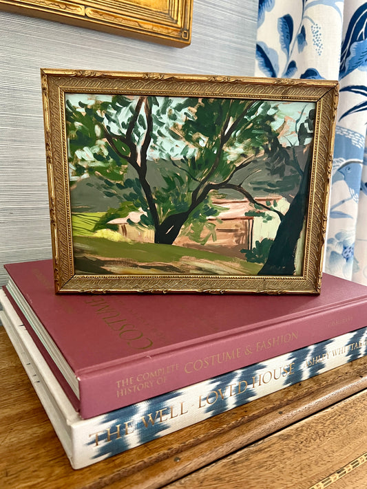 Early 20th Century Landscape with Terra Cotta European Villa Oil Painting in Gold Frame