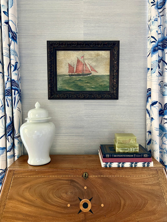 19th Century British Sailboat Ship Folk Portrait Oil Painting