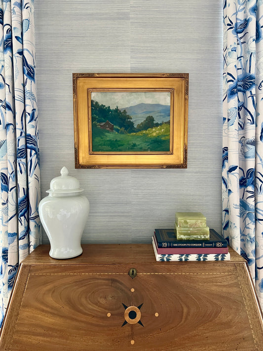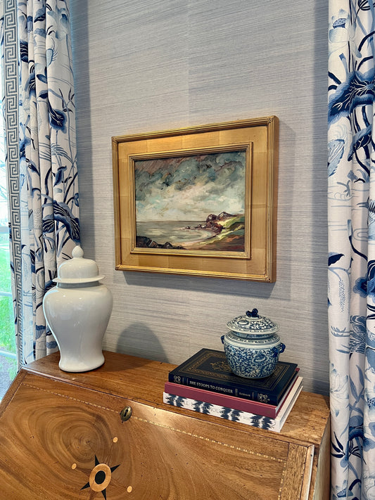Antique Coastal Landscape Cove Oil Painting in Gold Frame