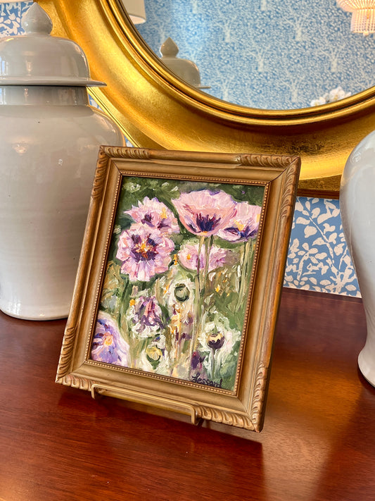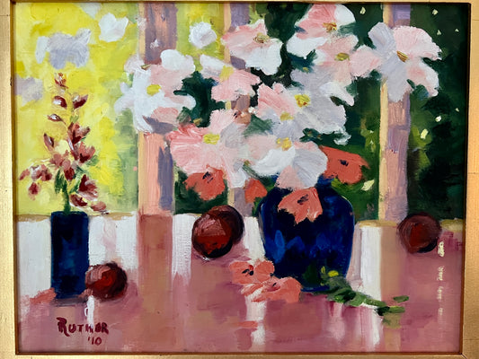 Pink and Blue Floral with Apples Modern Still Life Painting