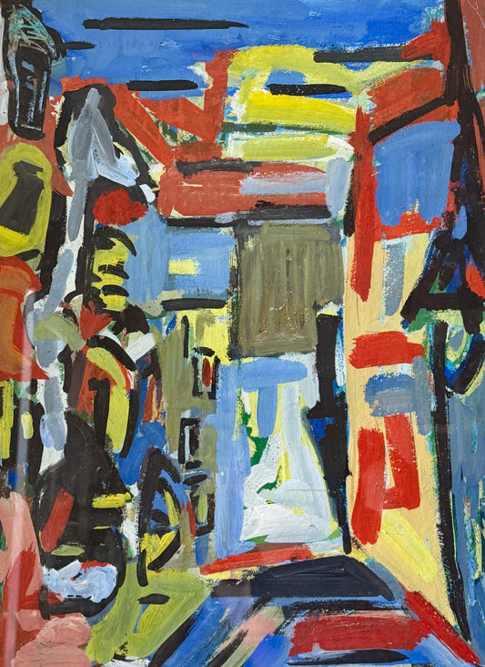 Richard Derby Tucker Abstract Dutch Door Oil Painting in Wood Frame
