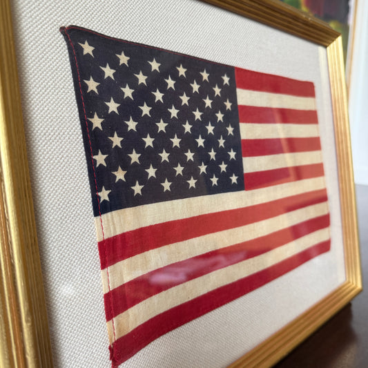 Vintage 48 Star American Flag on Duck Cloth in 19th Century Floral Carved Wood Frame