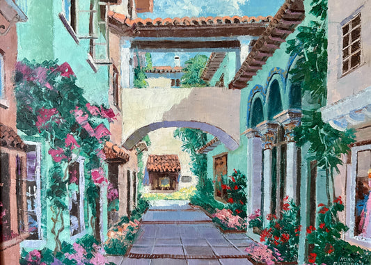 Ronni Pastorini Palm Beach Florida Via Mizner Townscape Oil Painting in Gold Frame