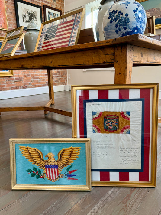 George Wells American Eagle United States Civil War Drum and Bunting Watercolor Rug Study in Gold Frame