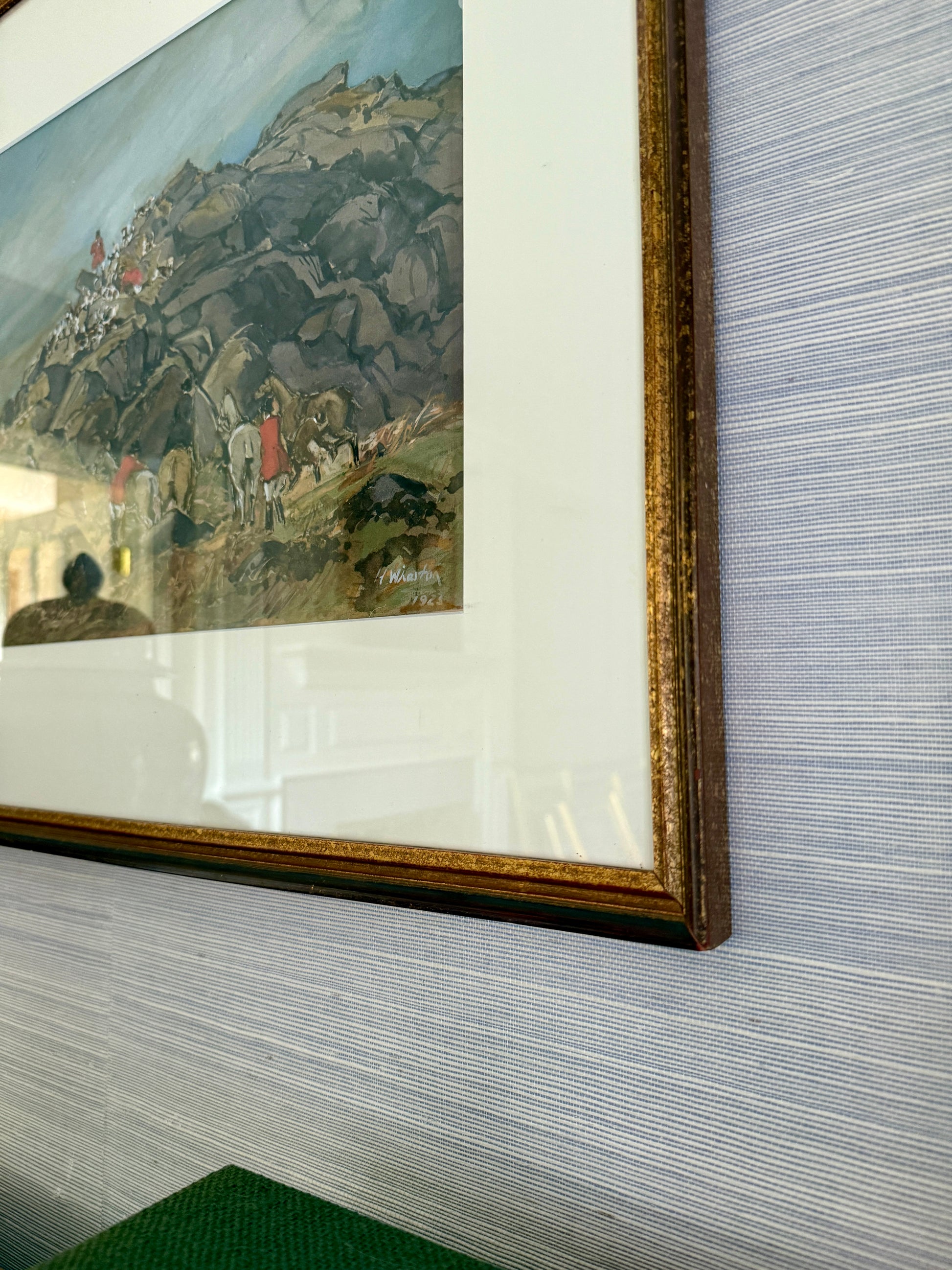1923 The One That Got Away Fox Hunting Scene Gouache Watercolor Painting in Gilded Frame