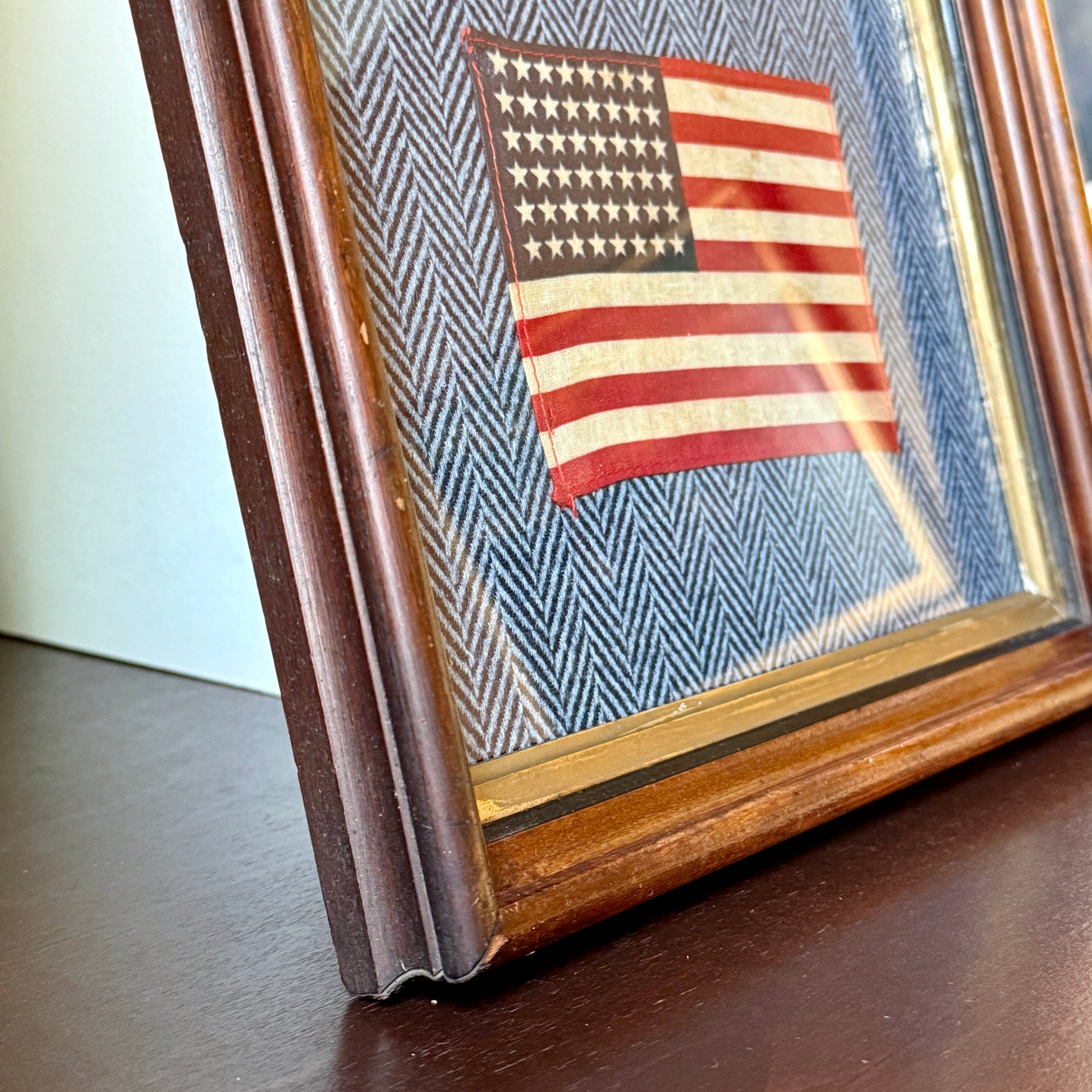48 Star American Parade Flag on Ralph Lauren Navy Herringbone in 19th Wood Frame