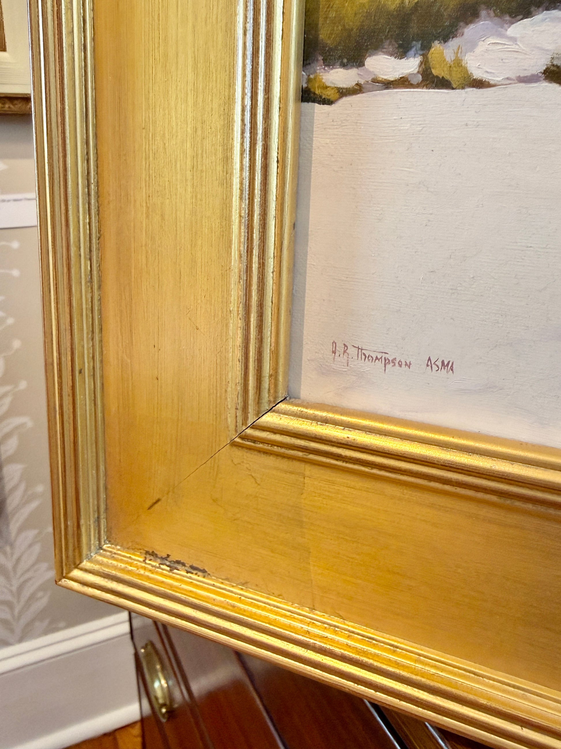 Anthony R. Thompson Fire Island Coastal Lighthouse Landscape Oil Painting in Gold Frame
