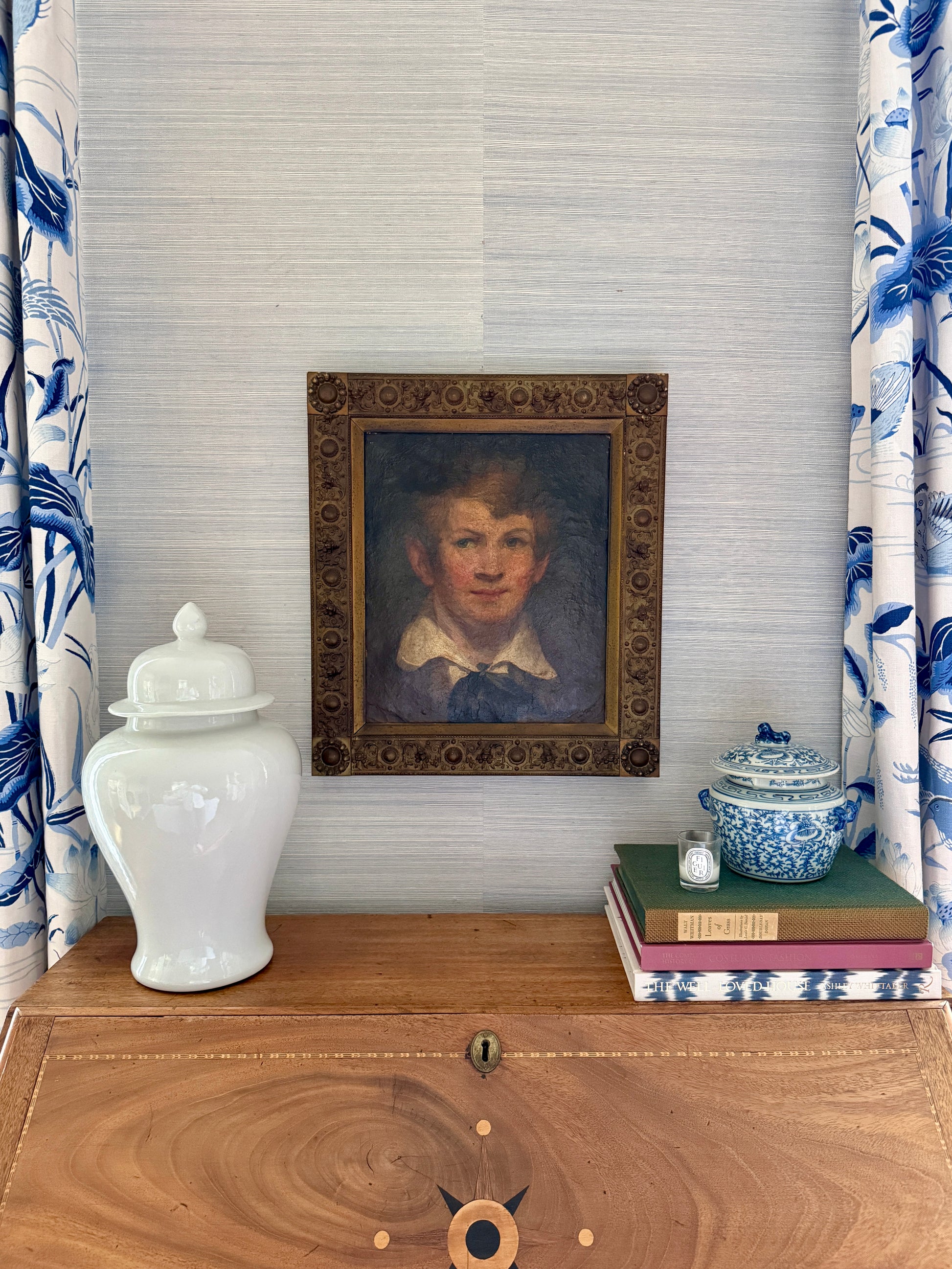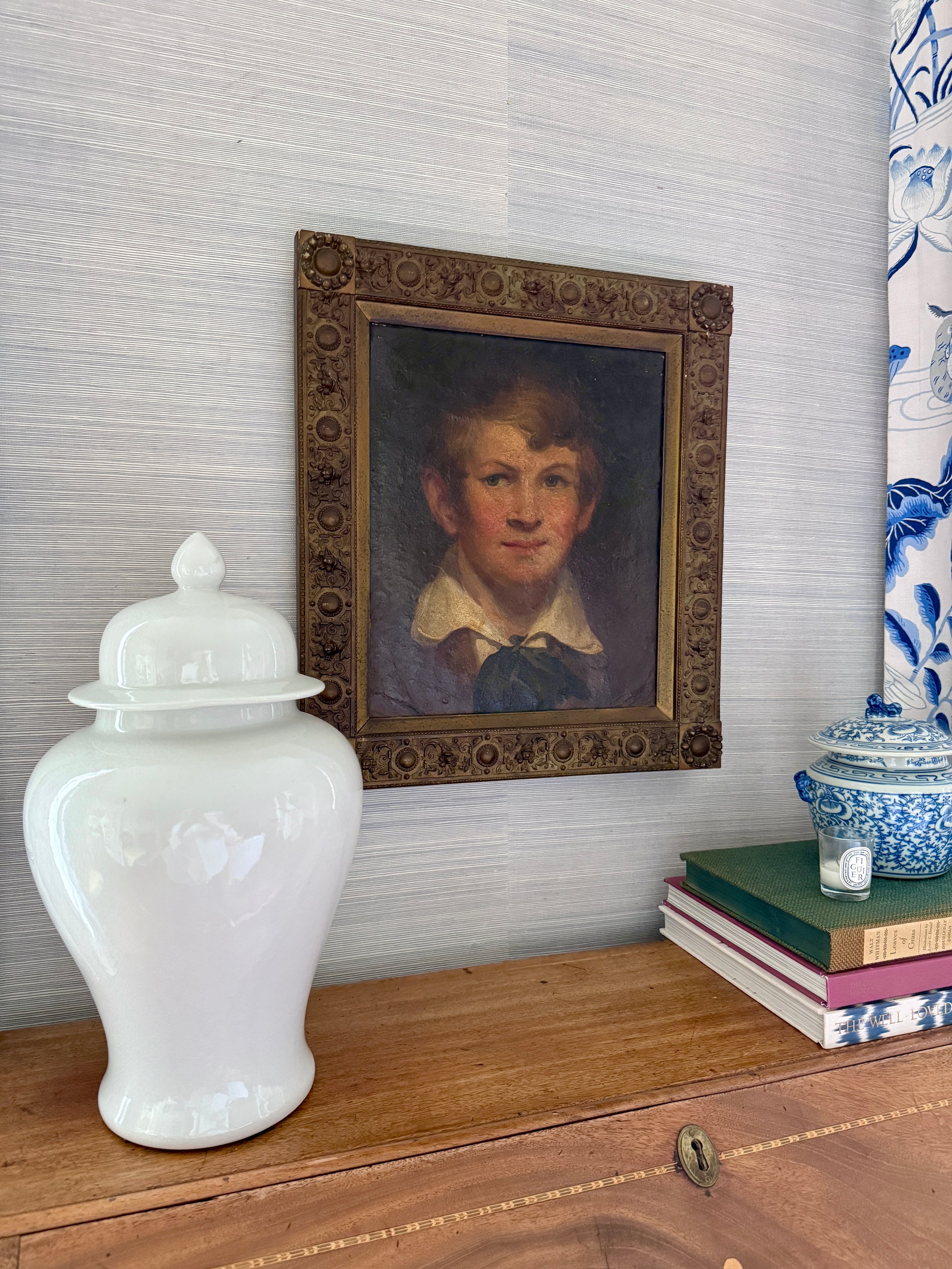 Antique Portrait of a Boy Oil Painting in Ornate Gilded Frame
