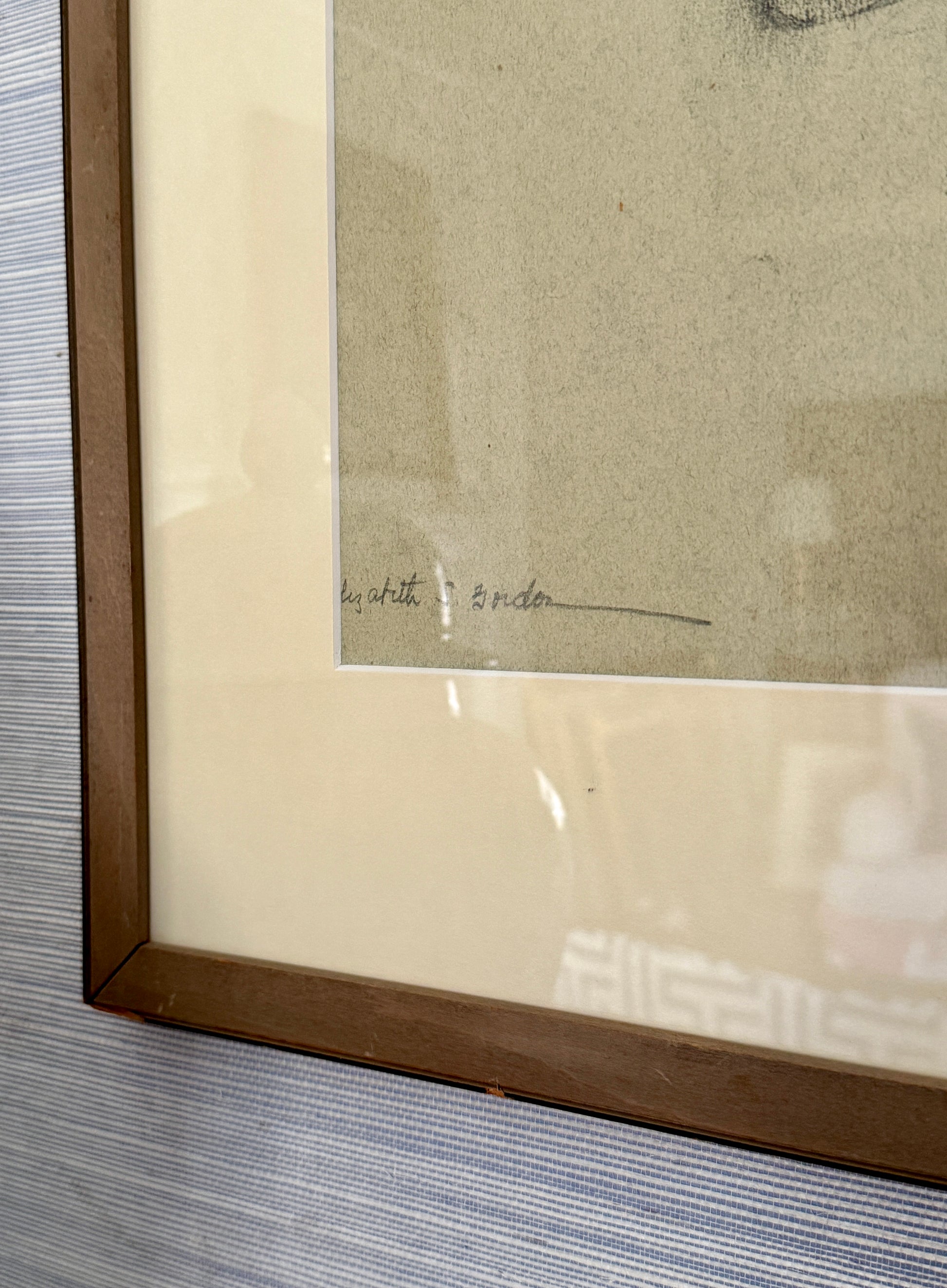 Elizabeth Stith Gordon Portrait of a Ballet Dancer Charcoal Drawing in Wood Frame