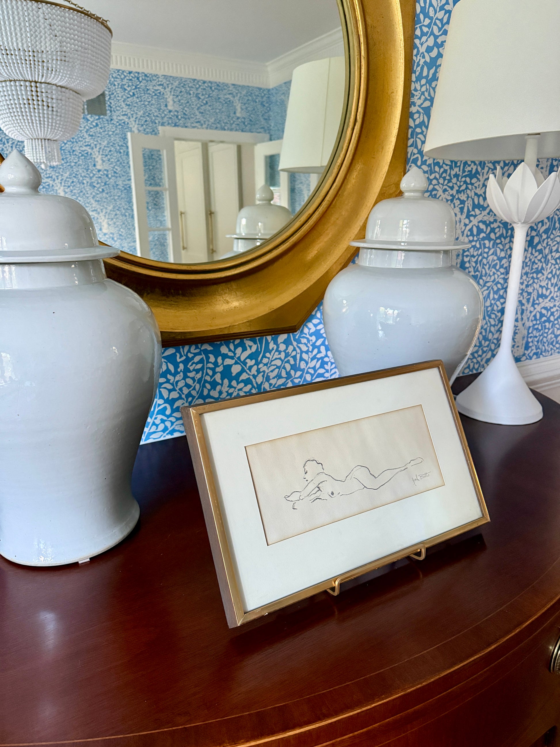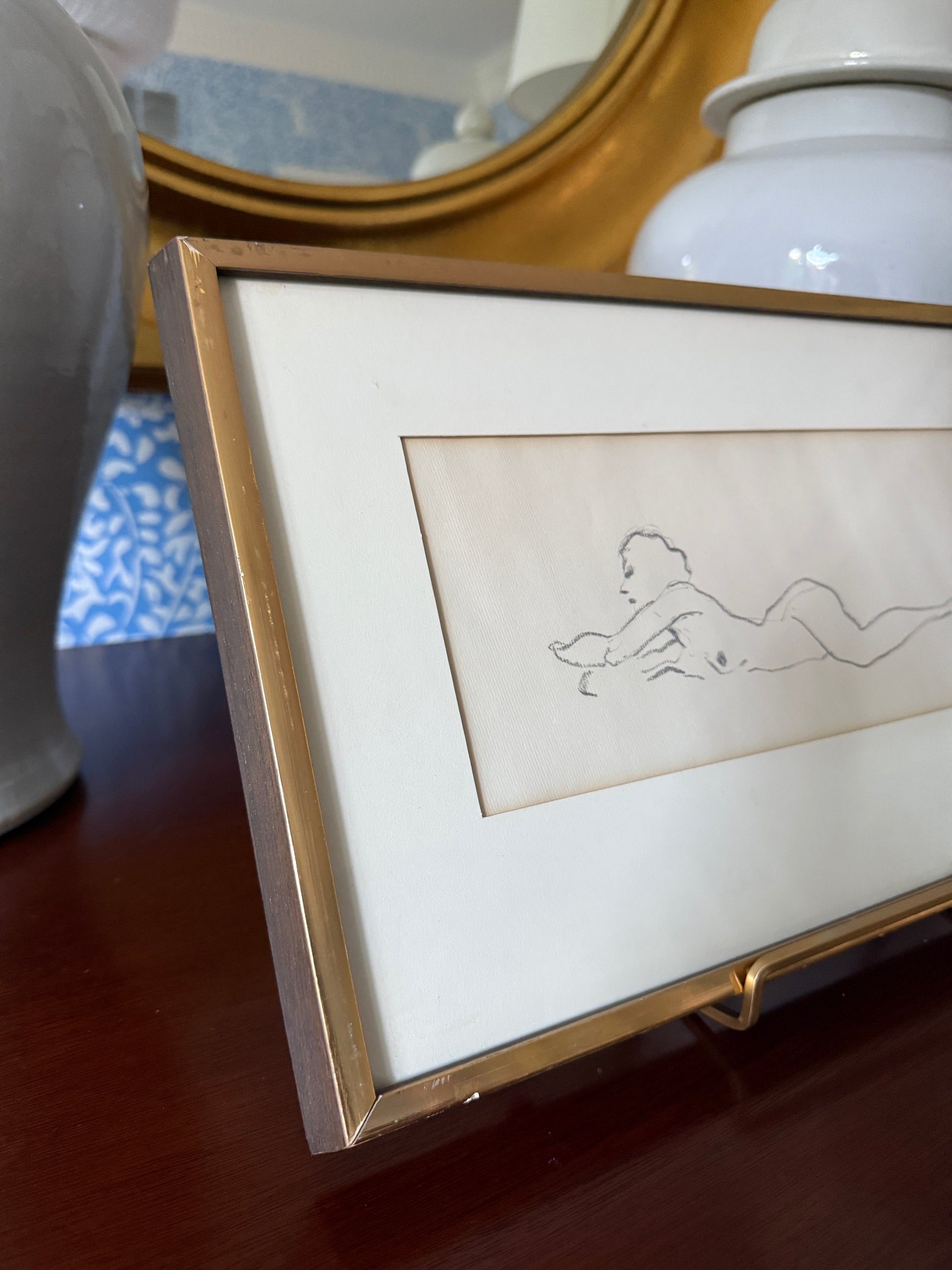 Geof Butts Vintage Nude Female Figure Drawing in Gold Frame