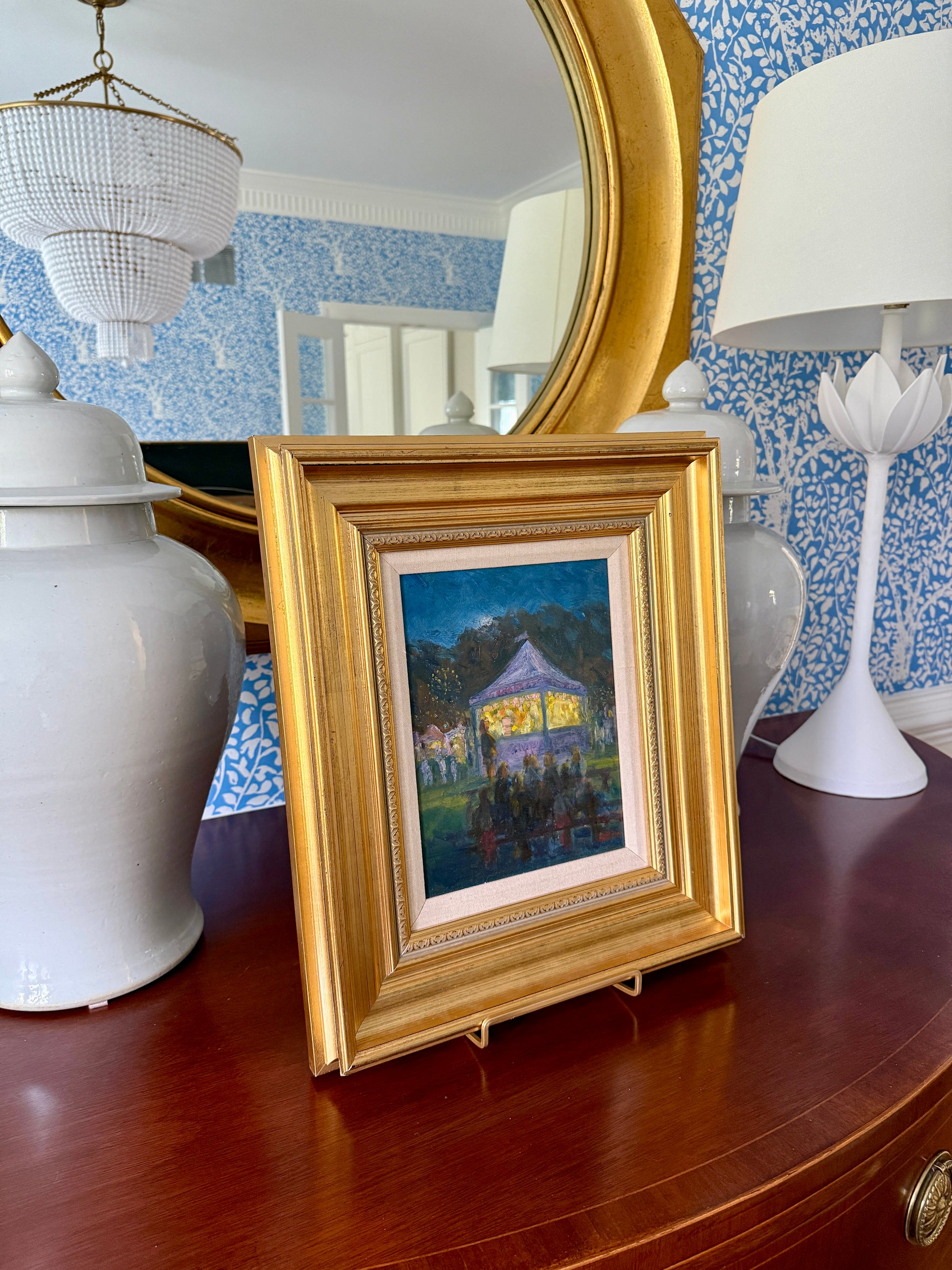 Kathleen Billis Towne Fete Moonlit Carnival Scene Oil Painting in Gold Frame