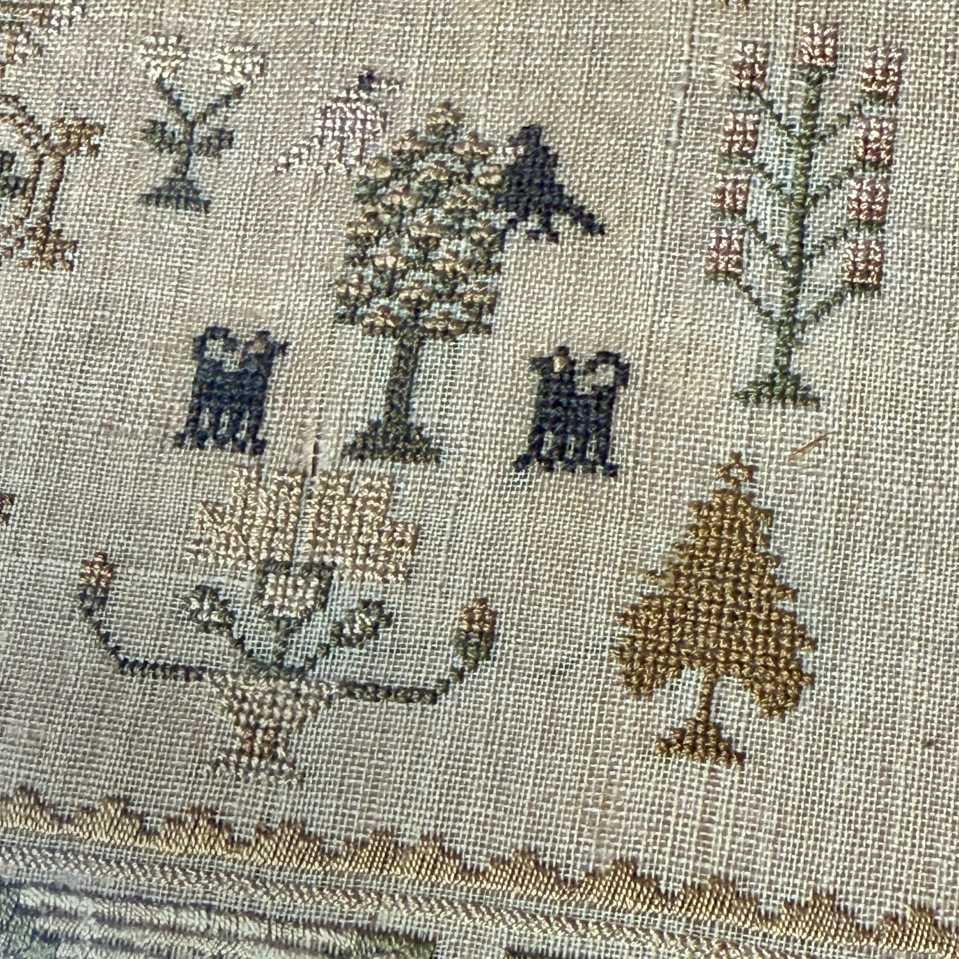 Late 18th - Early 19th Century Silk on Linen English Sampler in Wood Frame