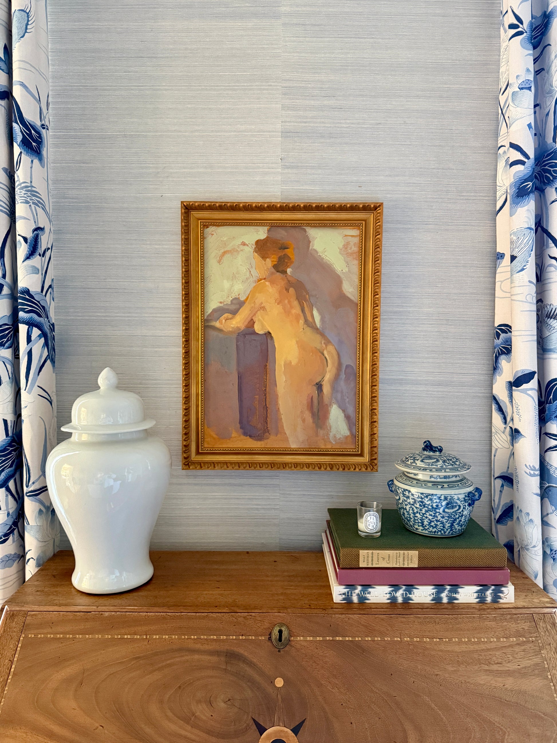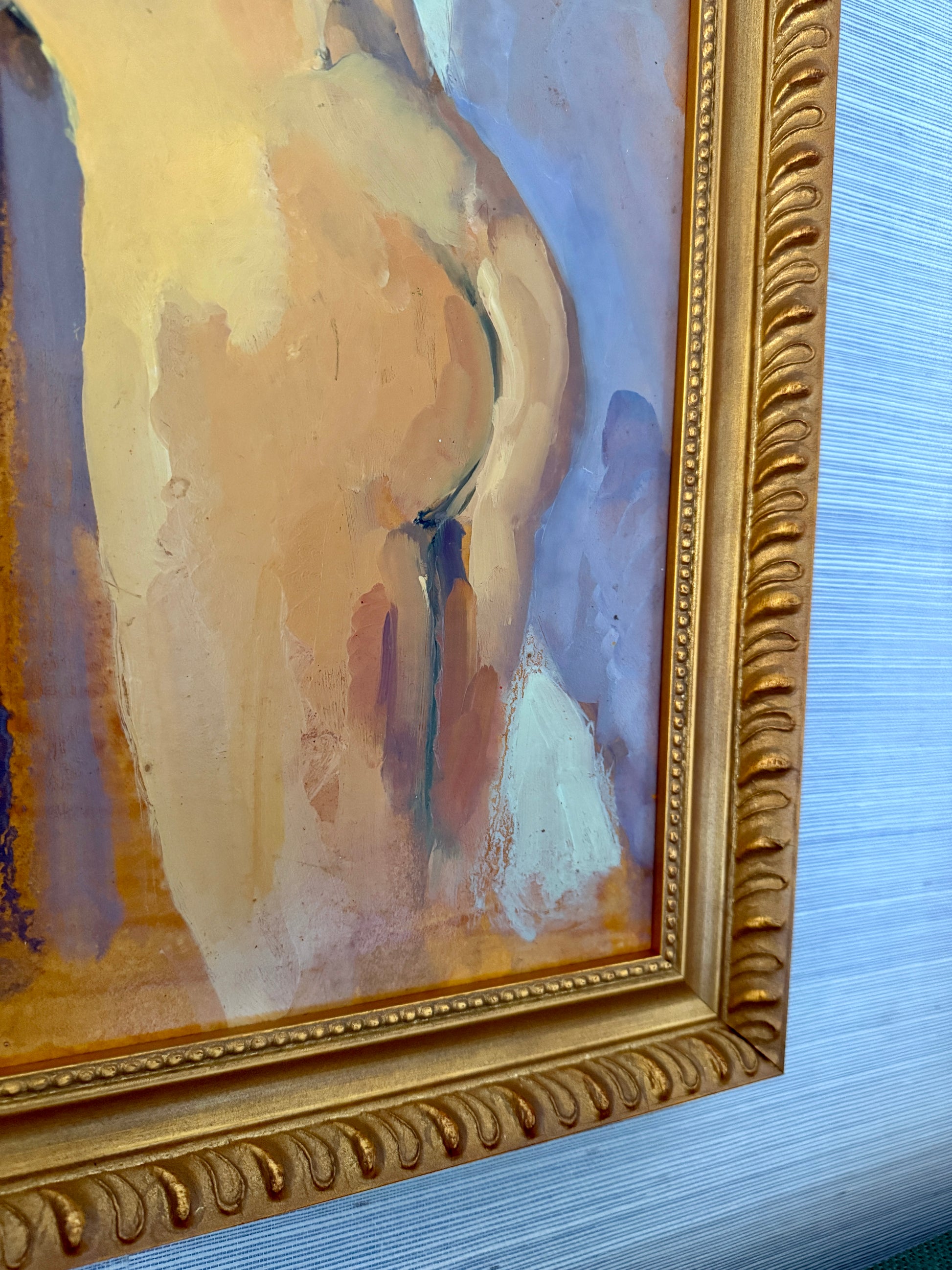 Leigh Gustafson Female Nude Portrait Oil Painting in Ornate Gold Frame