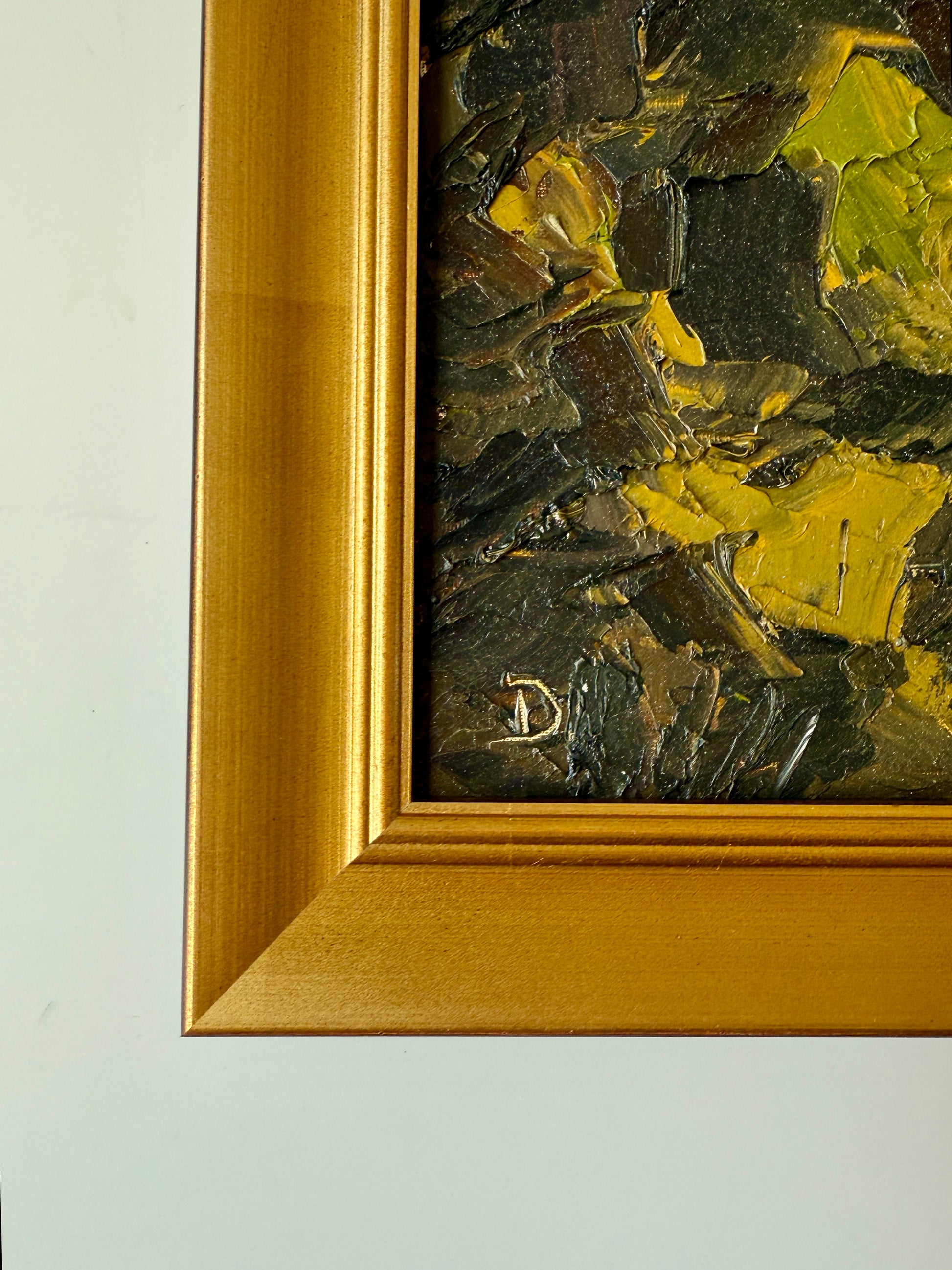Moody Scottish Highlands Mountain Landscape at Sunset Impasto Oil Painting in Gold Frame