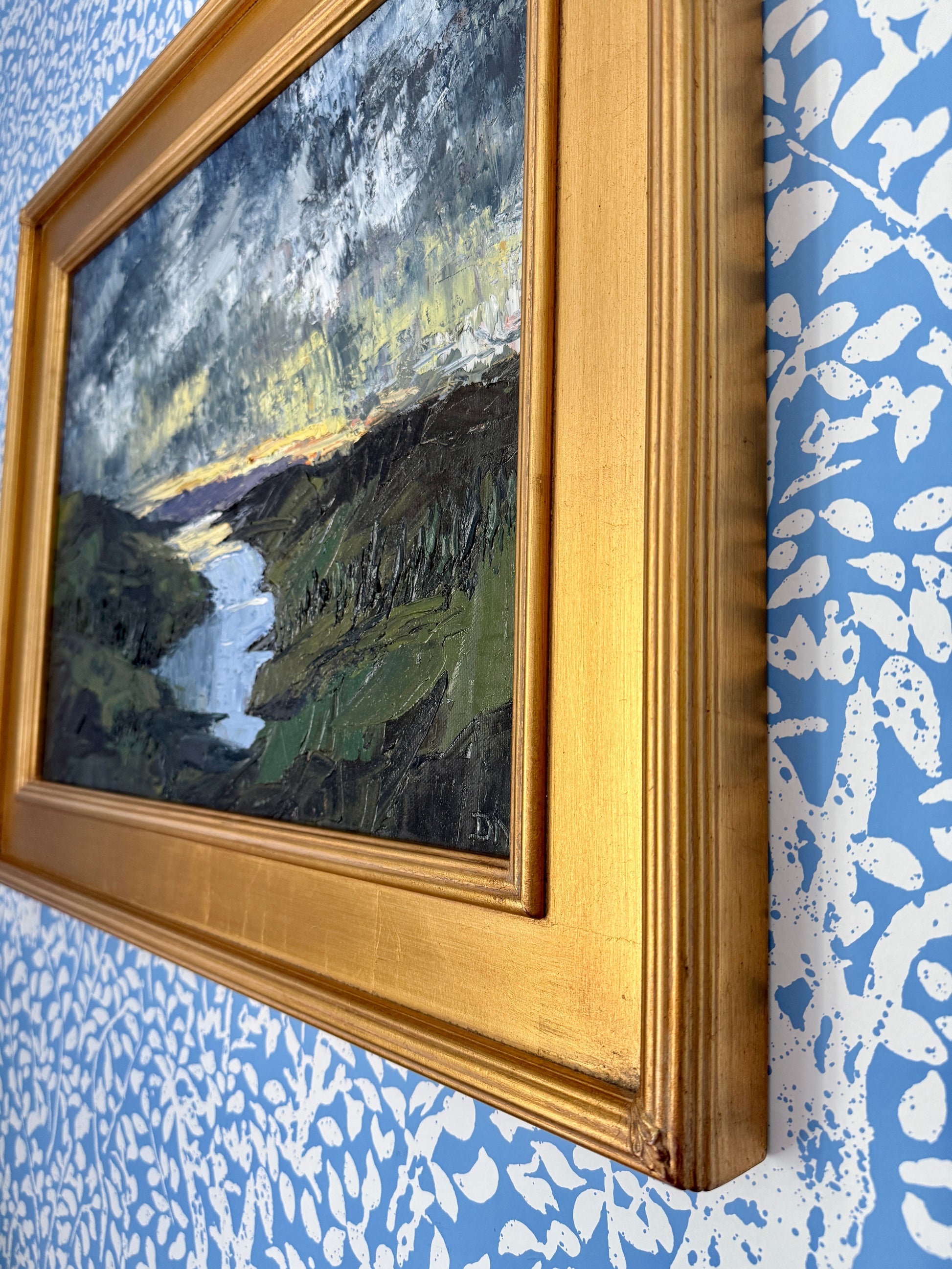 Landscape at Sunset Luminous Impasto Oil Painting in Gold Frame