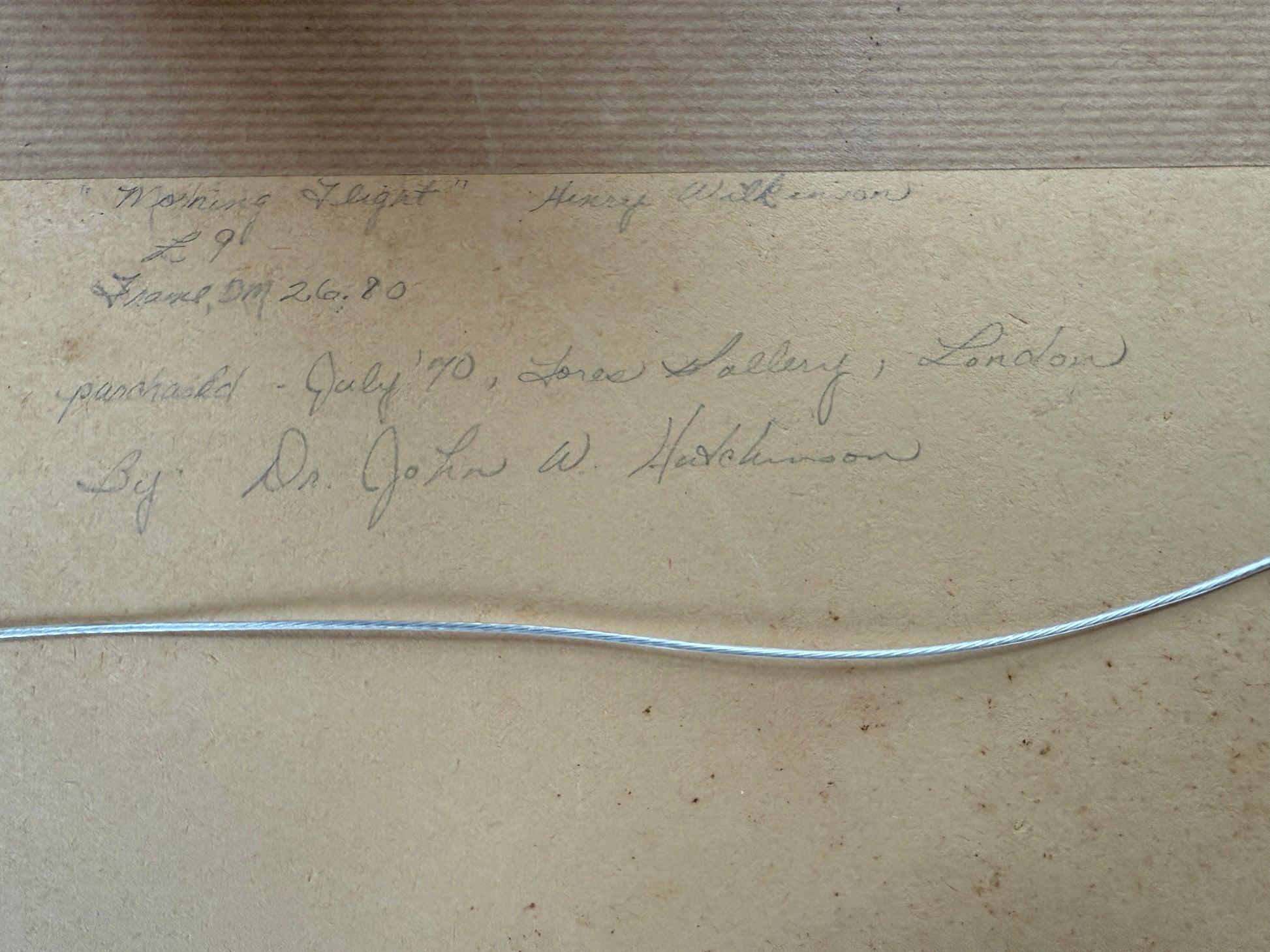 Henry Wilkinson (British, 1921-2011) signed and numbered etching of a hunting dog and mallards. Titled Morning Light. Artwork in custom gilded wood frame measures 19.5" x 23.5". Inscription on back indicates that this piece was purchased at a London gallery in 1970 by Dr. John W. Hutchinson. Artwork and frame in very good condition with light wear to matting.