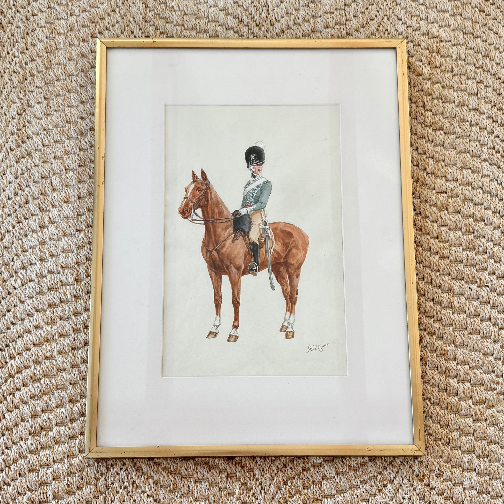 Reginald Augustus Wymer Antique Portrait of a Soldier in Blue on Horseback Watercolor Painting