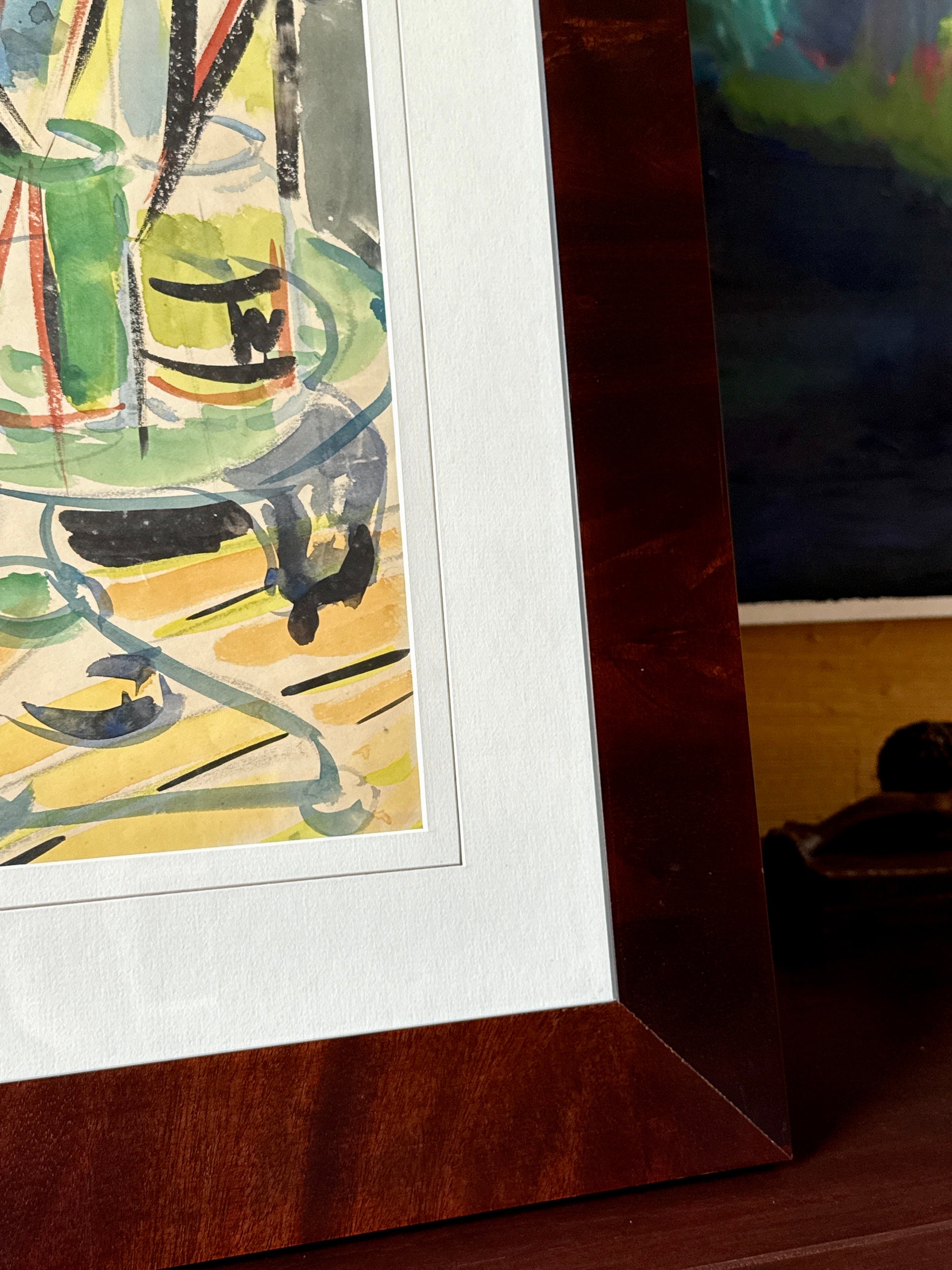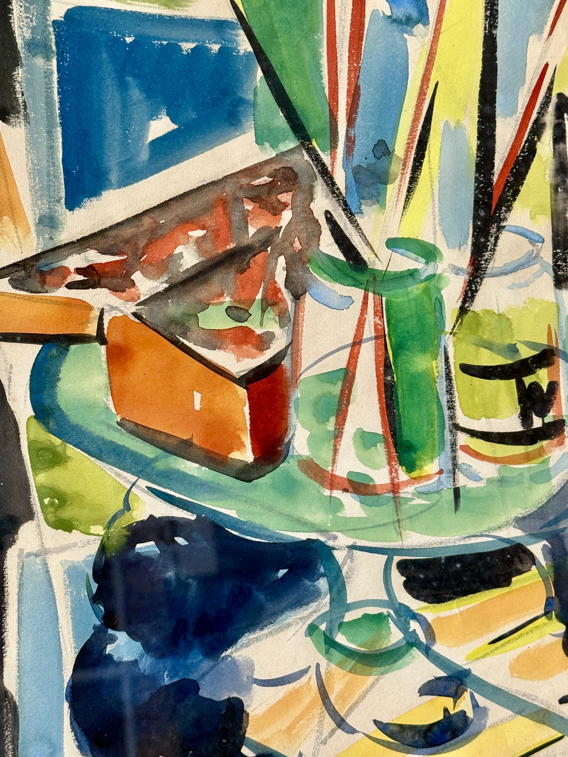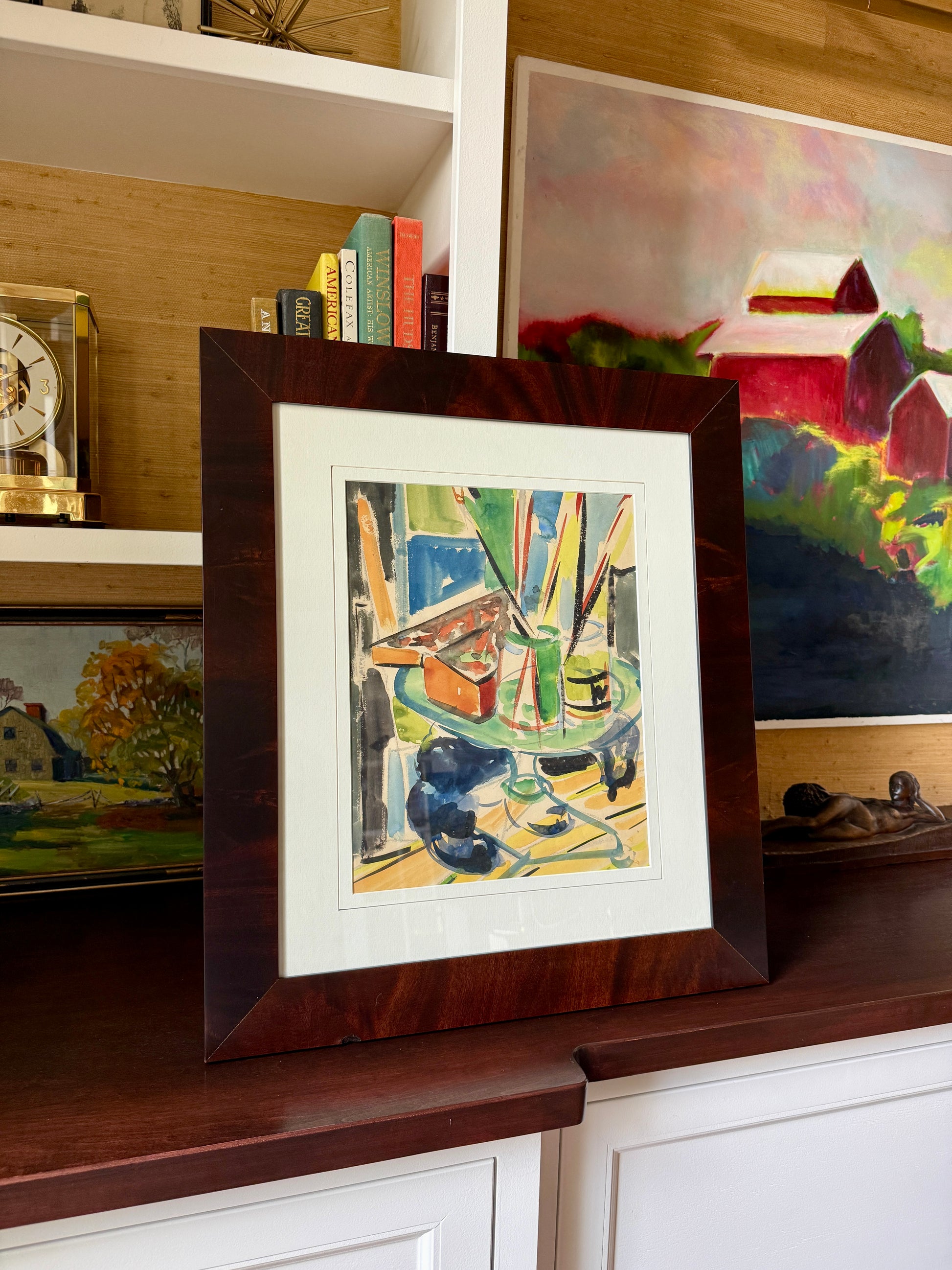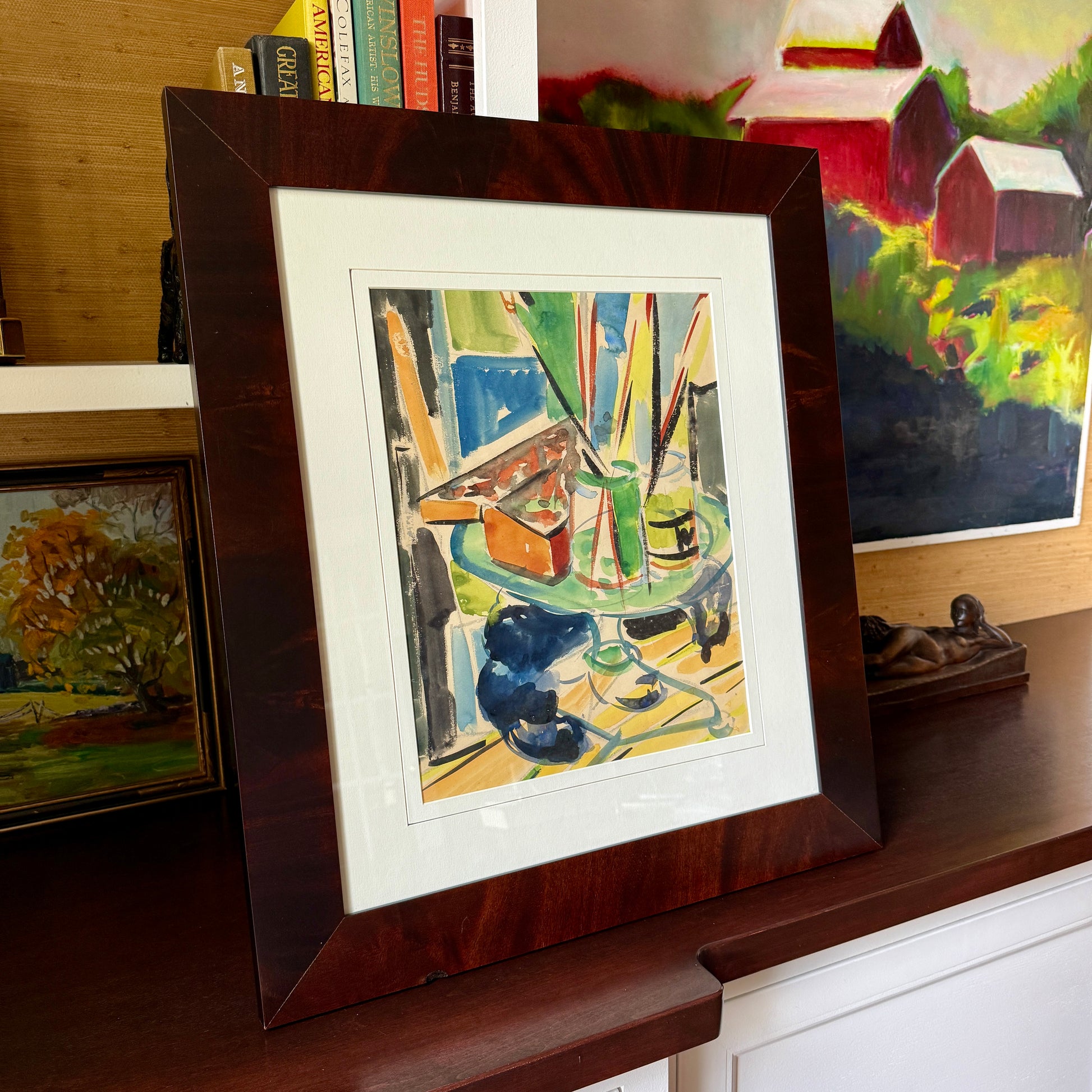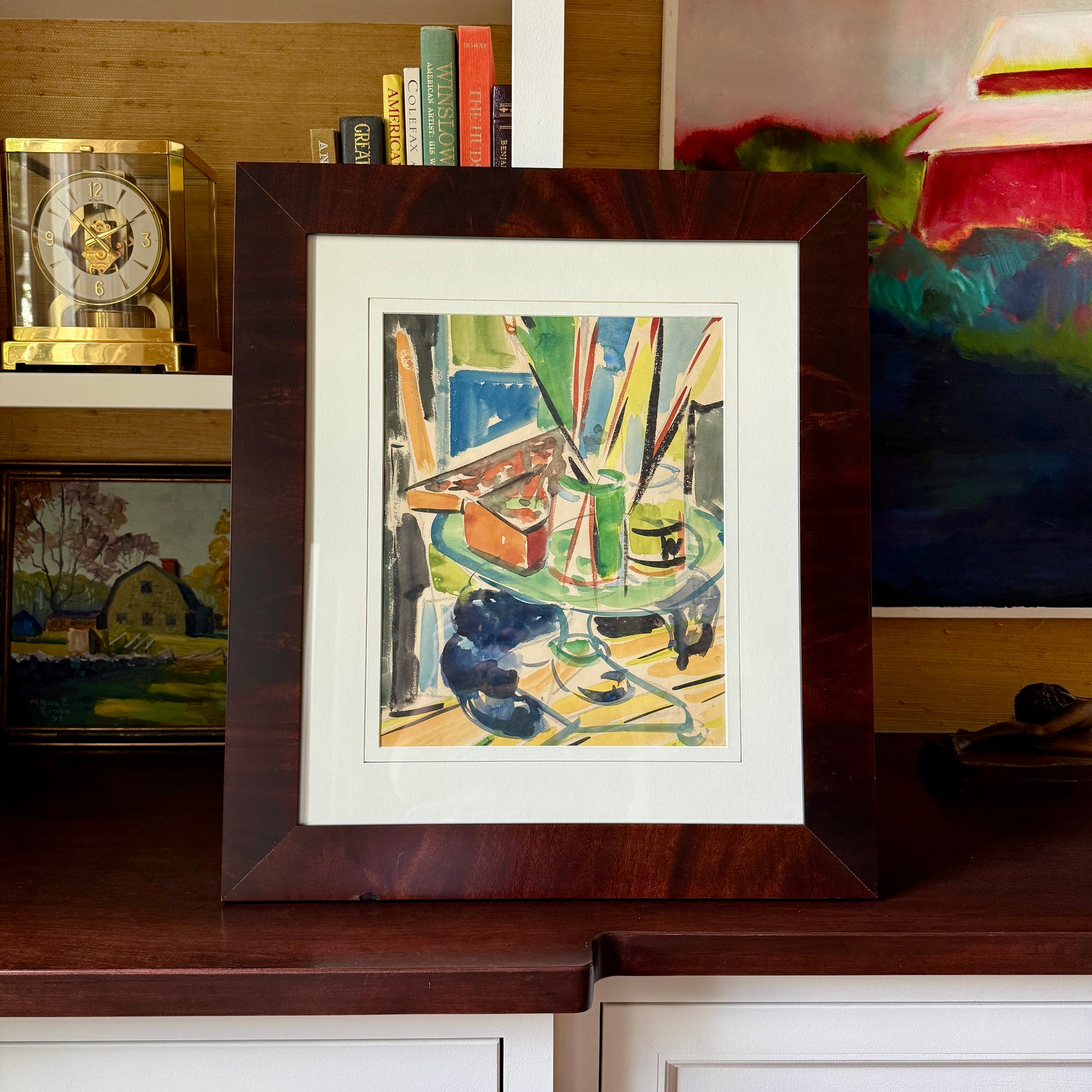 Richard Derby Tucker Abstract Colorful Still Life Watercolor Painting in Wood Frame