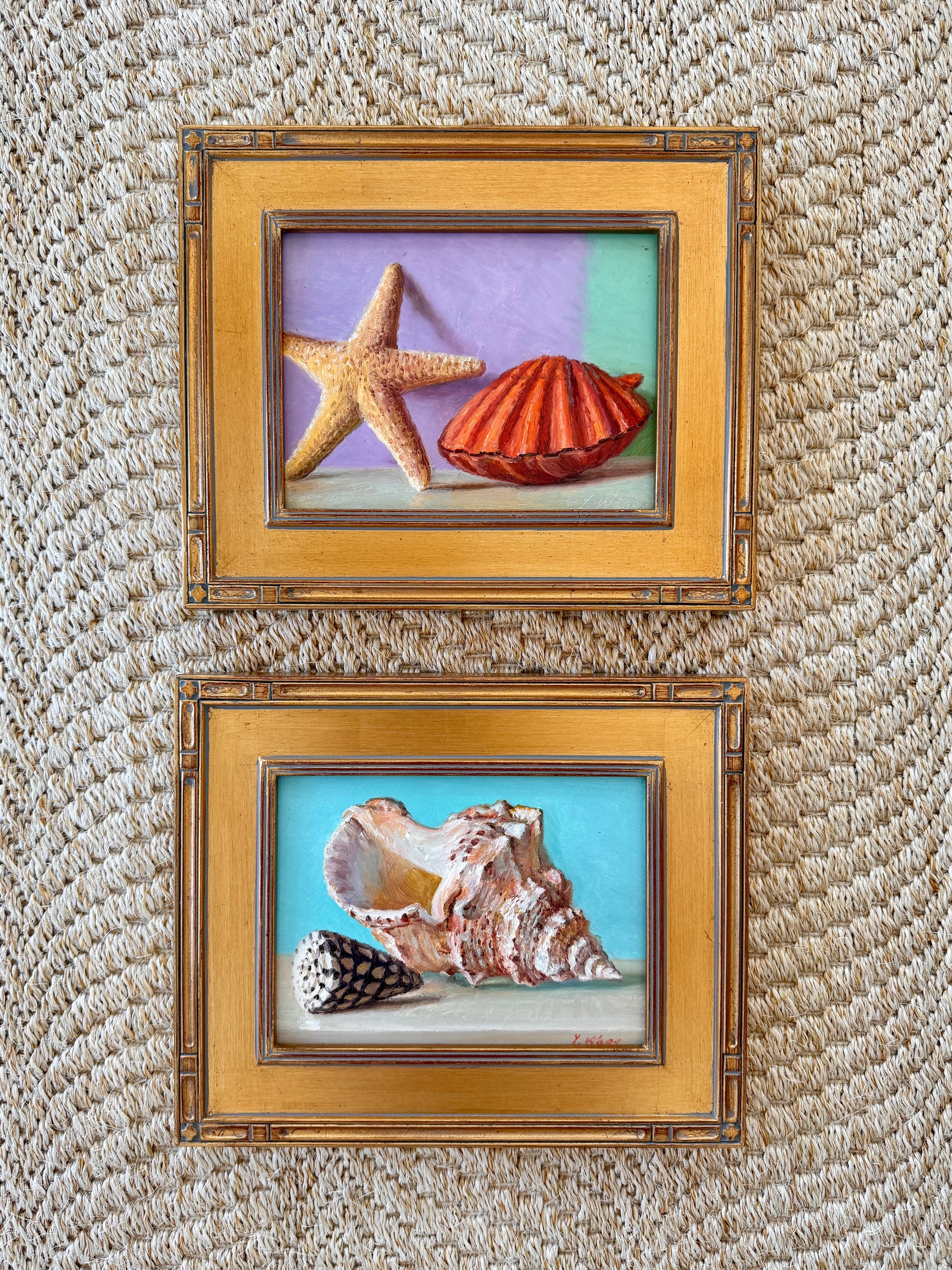 Summer Brights Starfish and Scallop Shell Still Life Oil Painting in Gold Frame