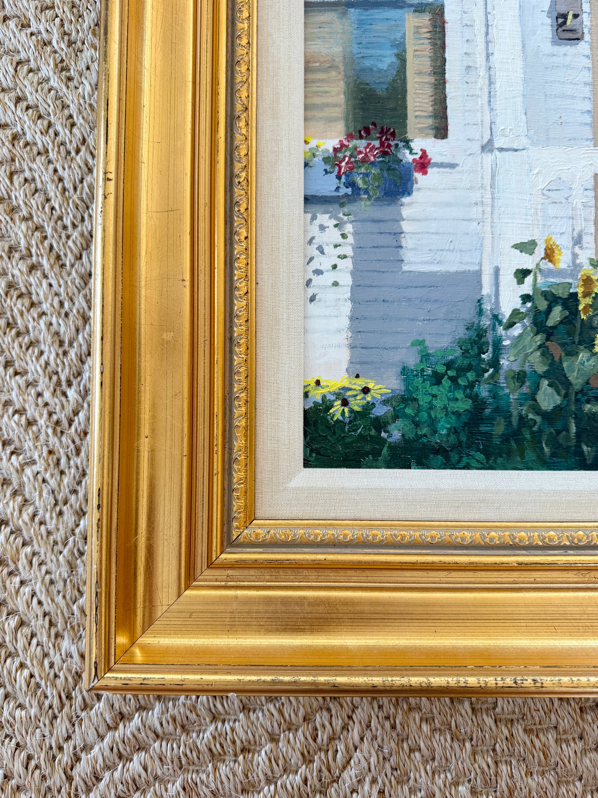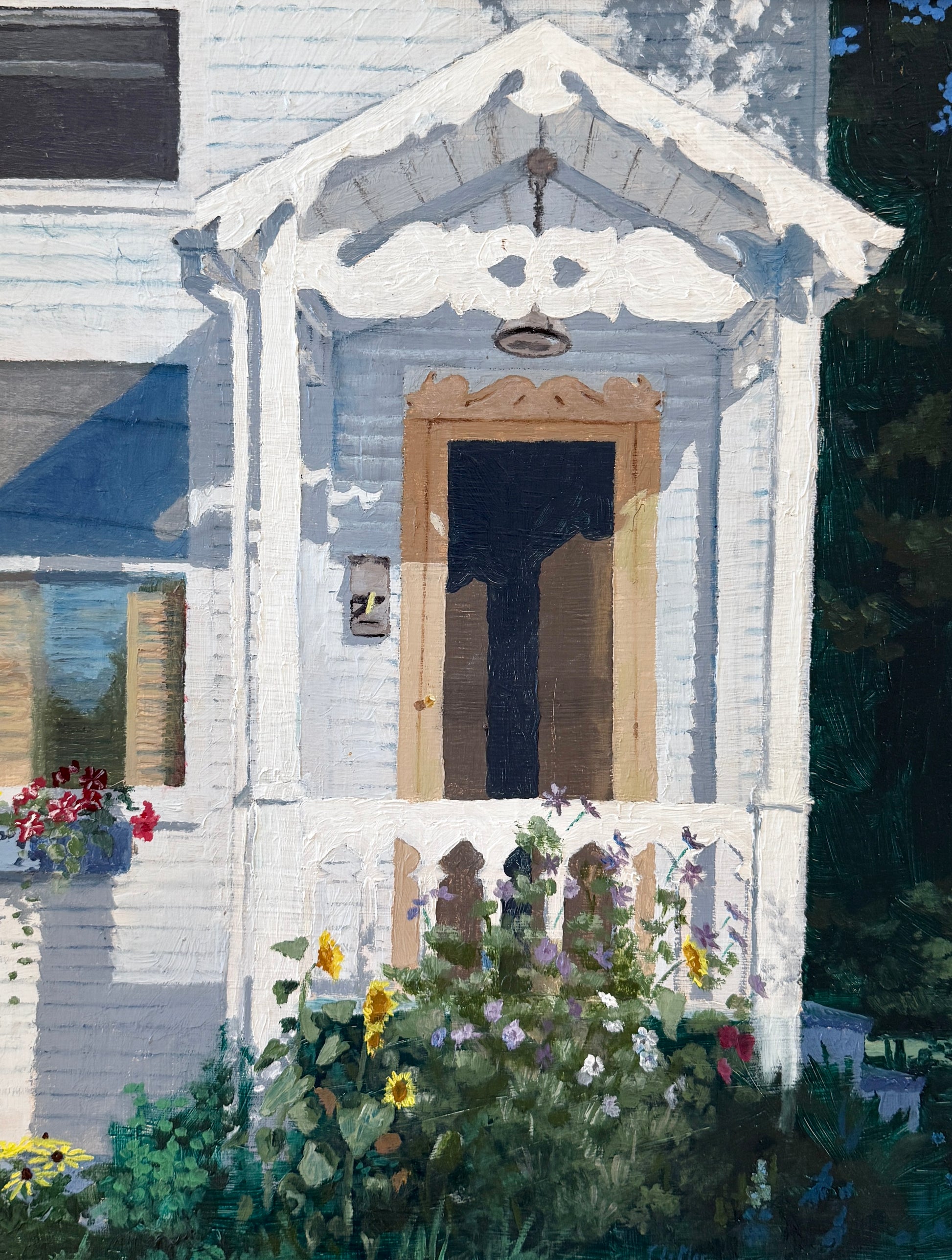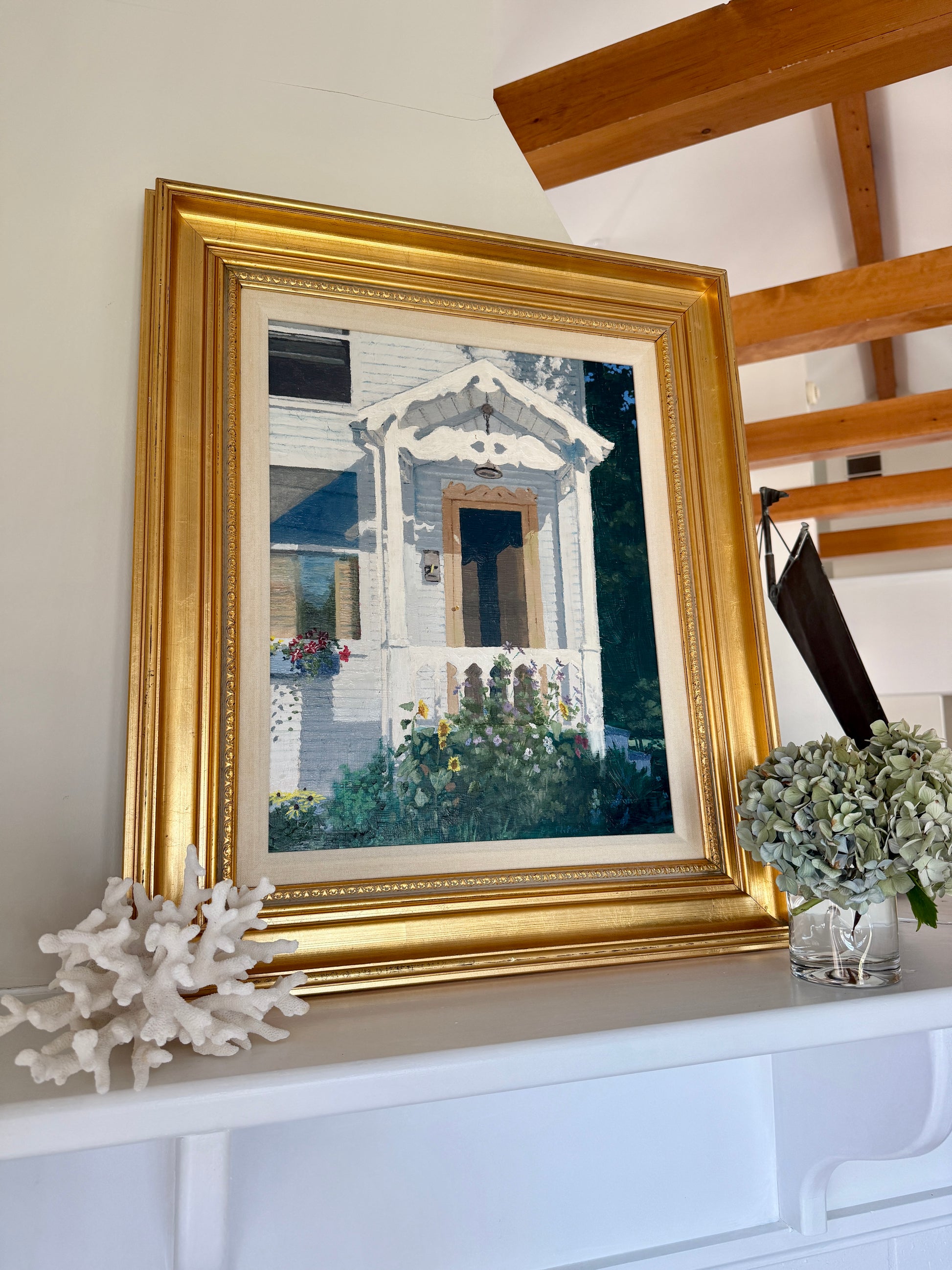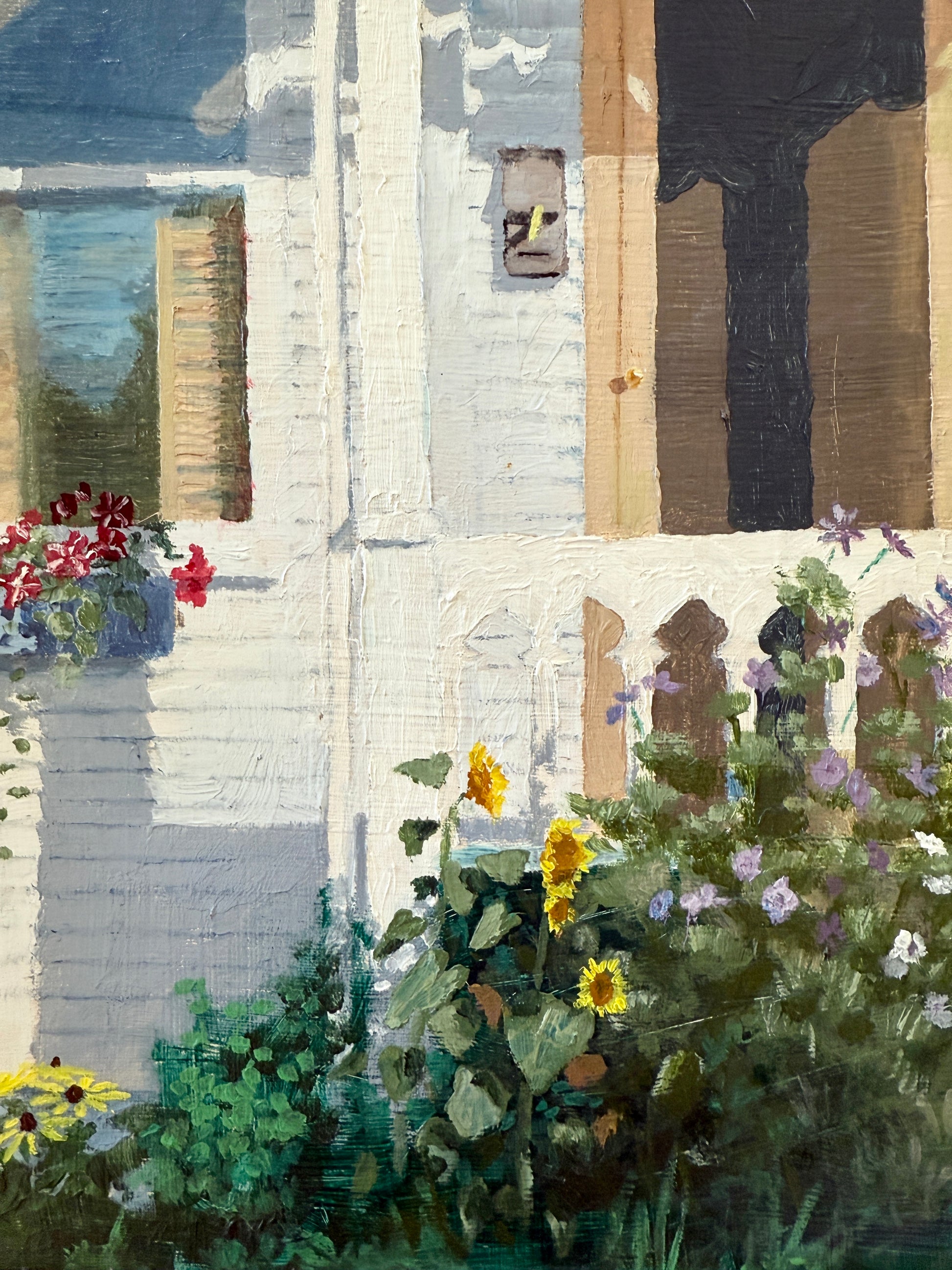 Terry LaMar Front Porch - Late Summer, Maine House Portrait Oil Painting in Gold Frame