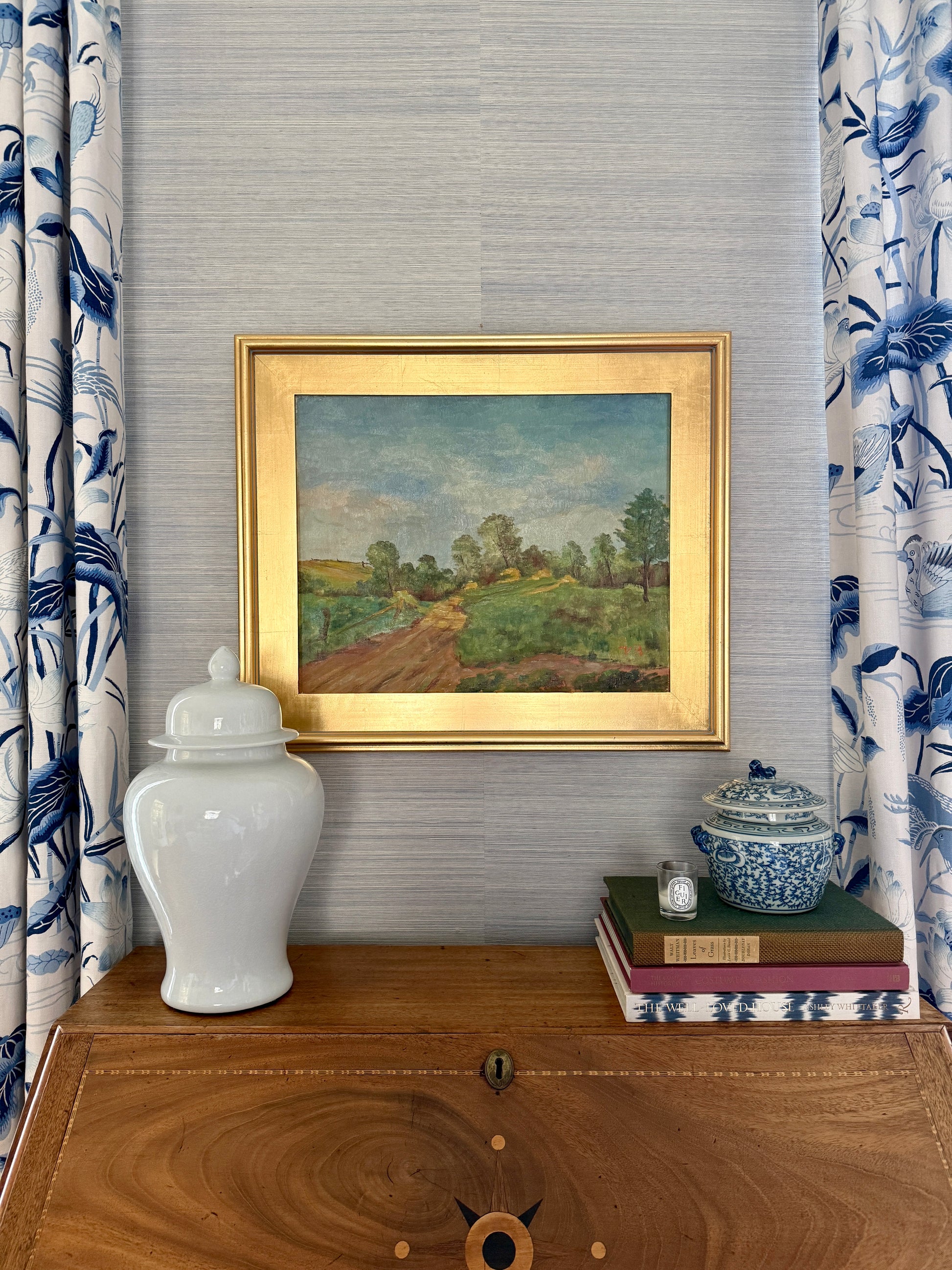 Vintage Impressionist Winding Road Country Landscape Oil Painting in Gold Frame